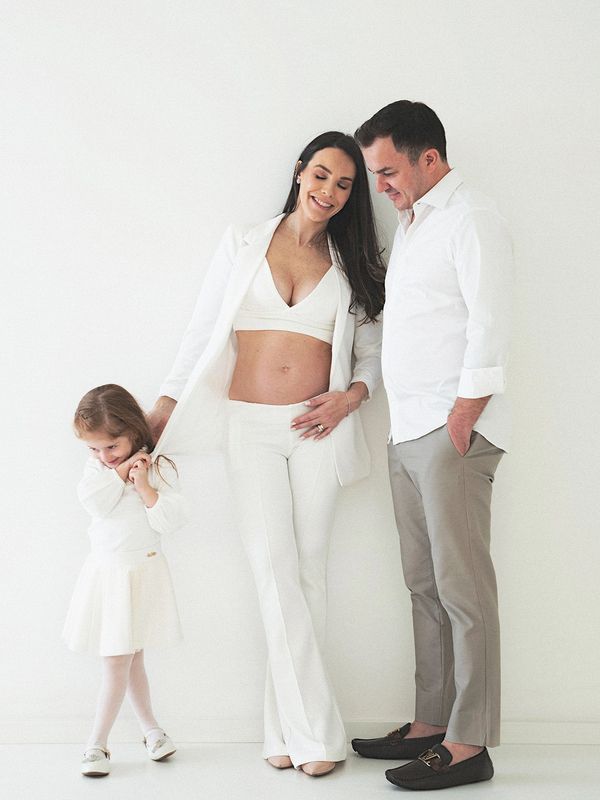Sessão em estúdio, sugerimos roupas leves, estampas discretas, de preferência cores neutras e bem confortáveis.